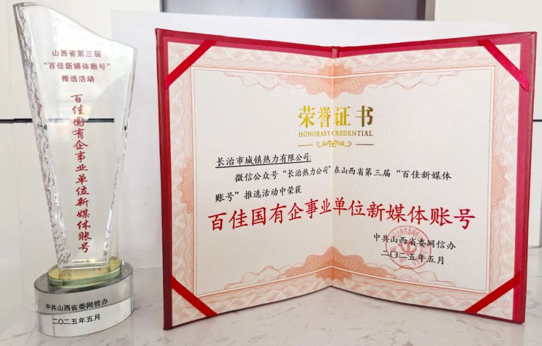 • 喜報!長治熱力公司微信公眾號榮獲山西省第三屆“百佳國有企事業(yè)單位新媒體賬號”長治市